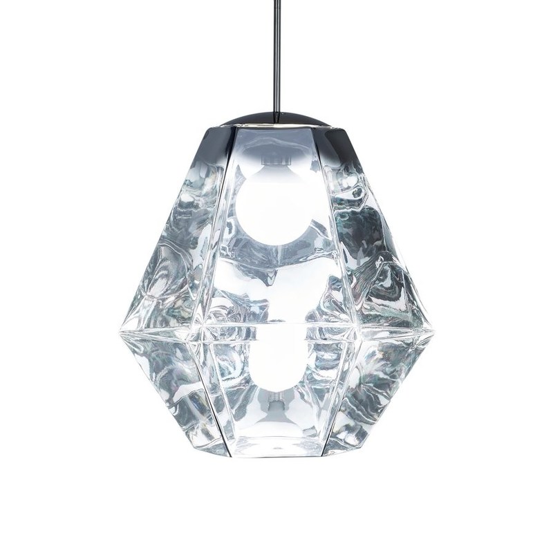 Futurista y facetado, Cut es un ejercicio de óptica, su acabado espejo de la era espacial cuando se apaga se transforma para revelar una gema caleidoscópica translúcida cuando se enciende.Reflexiones hipnotizantes de la esfera luminosa dentro de la repetición infinita dentro del corte de diamanteProducido en acabados cromados y de humo, pequeños y largos, colgantes y superficies, estas son las últimas aventuras en nuestra interminable fascinación por la reflectividad.luminosidad y transparenciaDisponible como colgante y luz superficial.