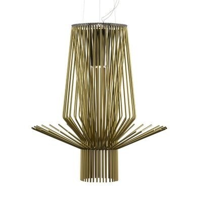 Un grupo de líneas que crean una sinfonía elegante y fascinante en un equilibrio suspendido, casi mágico y dan vida a una nueva lámpara diseñada para aparecer en grandes espacios públicos y privados.Los elementos de aluminio fluyen y se combinan para dar luz a la lámpara, el efecto incorpóreo.