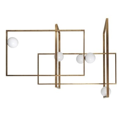2La lámpara de cristal Mondrian cuenta con cinco esferas de cristal Murano sopladas en blanco, amatista o gris humo y la estructura metálica viene en una variedad de acabados metálicos.