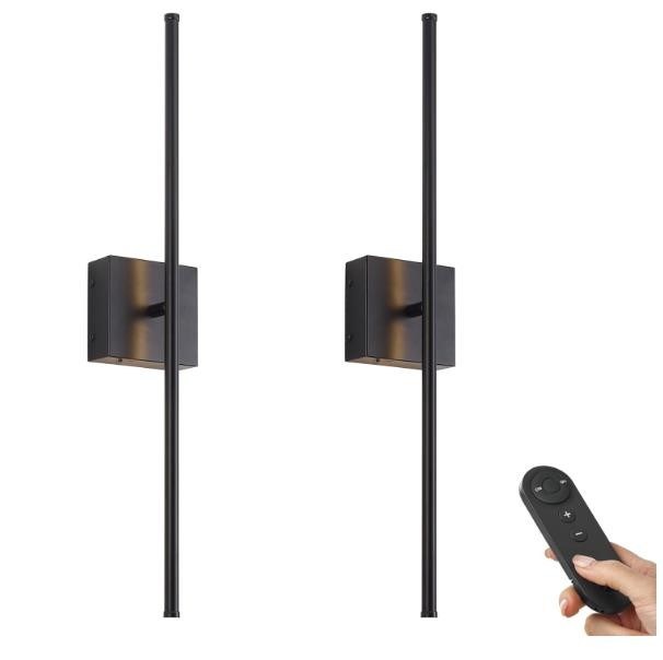Artdecolite Batería operada lámpara de pared de luz LED con control remoto.Pared de pared con batería con control remoto, pared de pared de LED con banda atenuable Conjunto de dos, 350 ° Rotate, 3000K LED Negro luz de pared inalámbrica para el salón, pasillo, dormitorio