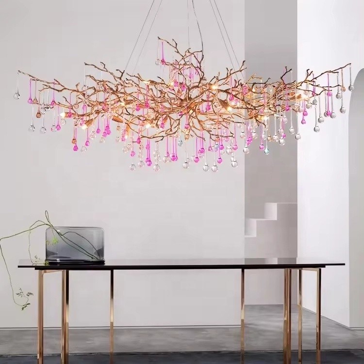 Candelero de cristal de oro de rama de árbol moderno |