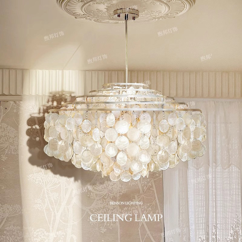 Nombre | Concha de la lámpara romántica Hotel Salón Creativo Blanco Natural Perla Concha de la mar Capiz colgante colgante de la lámpara de la lámpara |
