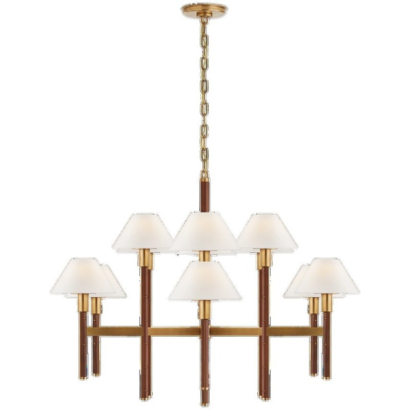 Lámpara de techo de madera natural y metal de candelabros de dos niveles