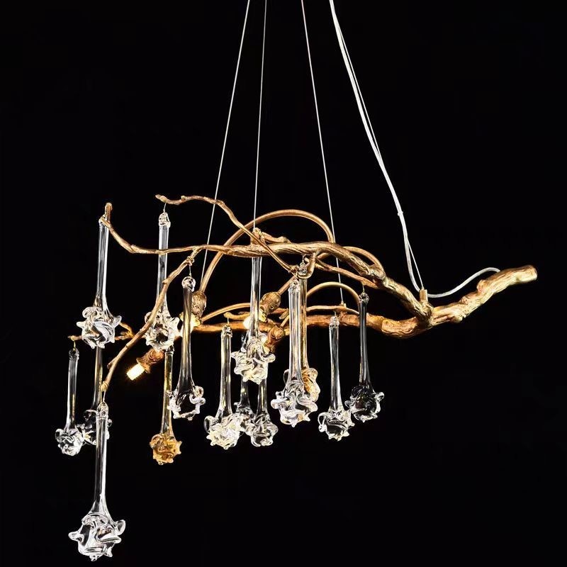 Diseño moderno rama candelabro rosa cristal luz colgante todo cobre lámpara de techo
